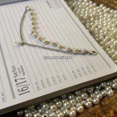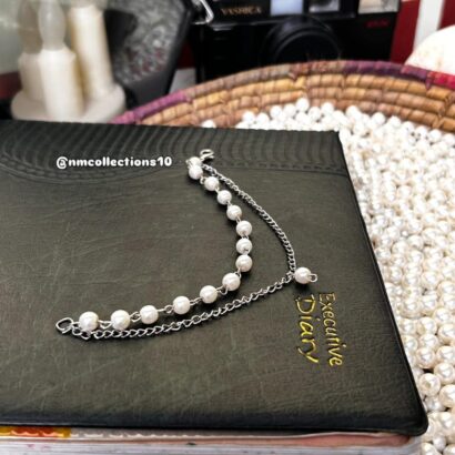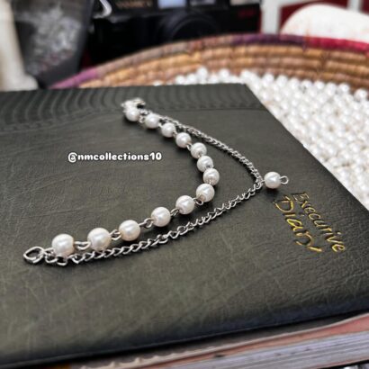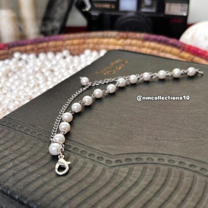 A delicate and chic handmade bracelet featuring a mix of lustrous pearls and a sleek silver chain. Perfect for adding a touch of elegance to any look. ✨
