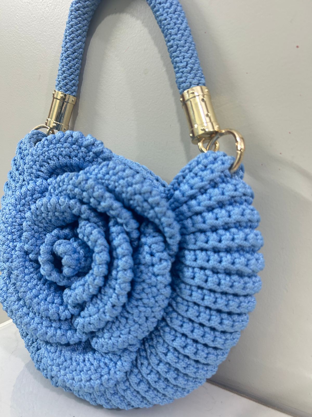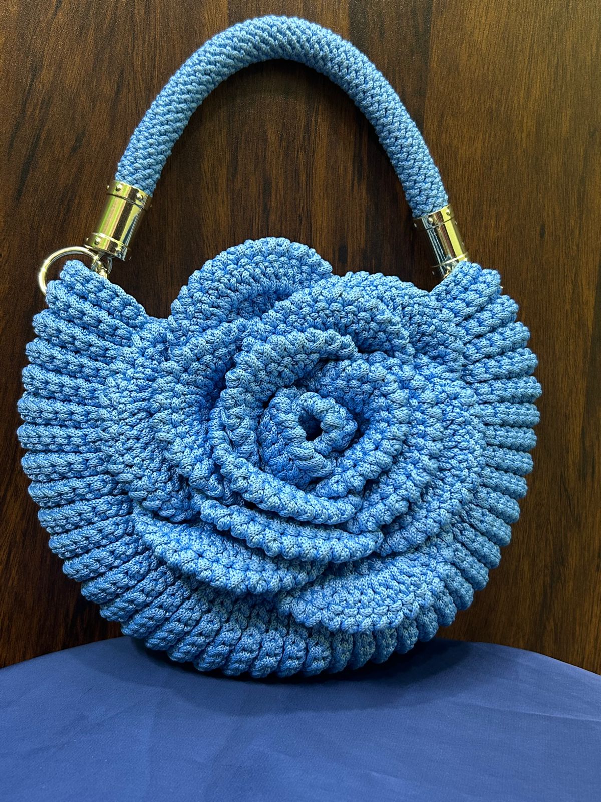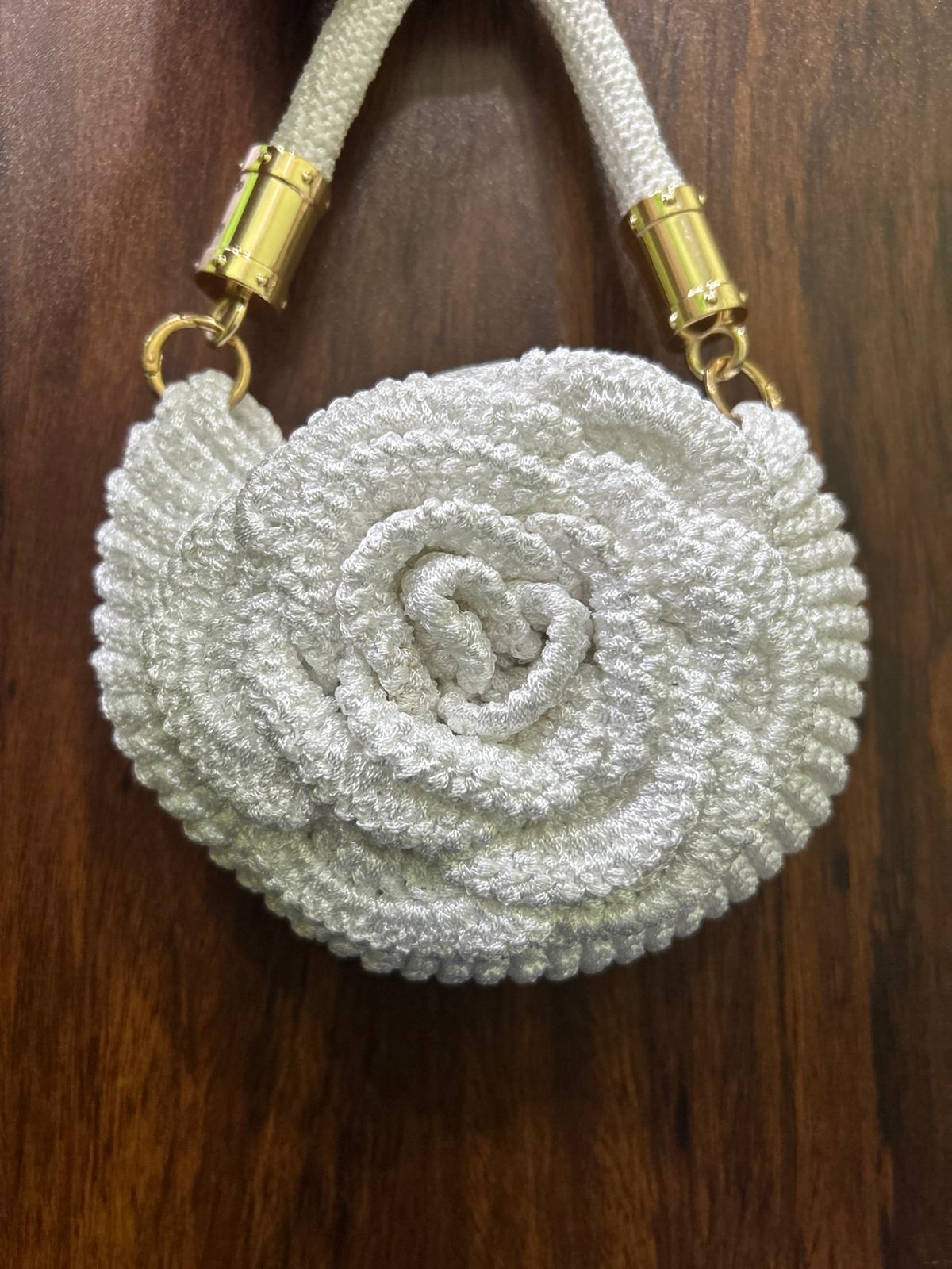 Step out in style with this unique, handmade crochet clutch. Meticulously crafted with high-quality white yarn, this bag features a stunning, three-dimensional rose design that adds a touch of romantic elegance to any outfit. The intricate texture and soft feel of the crochet work make it a true piece of wearable art.