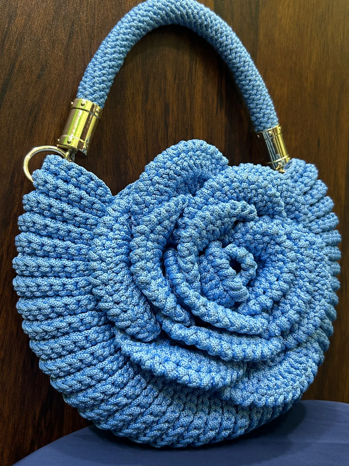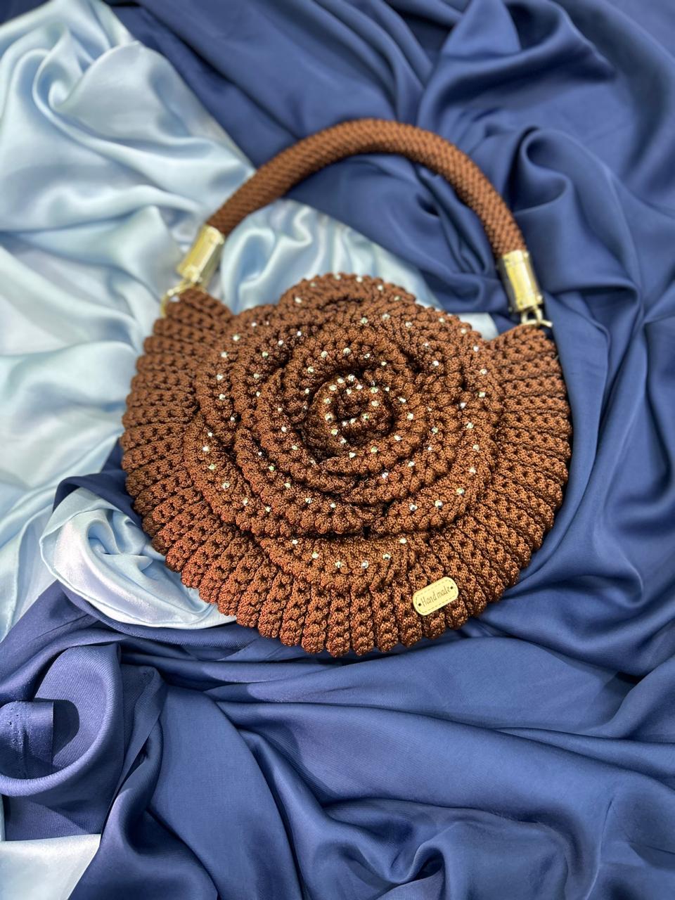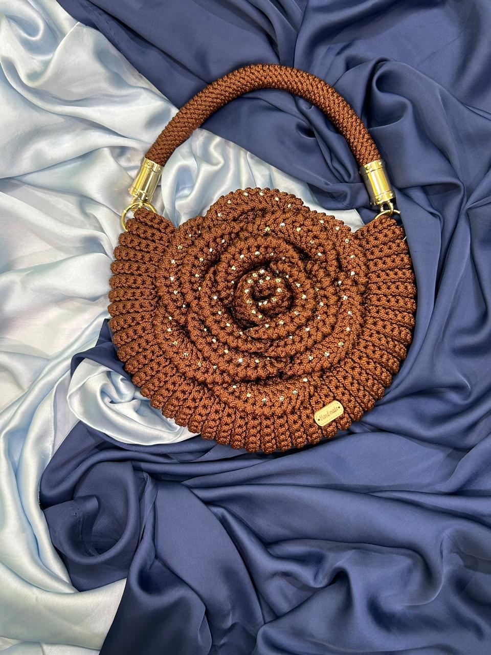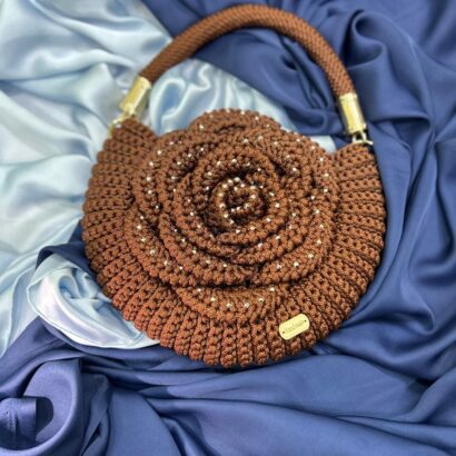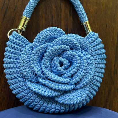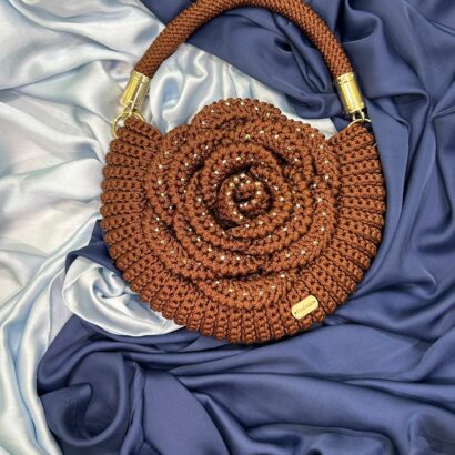 The clutch is secured with a sleek, gold-tone metal frame and a removable rope handle, offering versatility in how you carry it. Whether you’re heading to a wedding, a fancy dinner, or a gala, this bag is the perfect accessory to complement your look. It’s spacious enough for your essentialsโphone, keys, and lipstickโand small enough to remain effortlessly chic. This crochet rose clutch is more than just a bag; it’s a statement of sophistication and handcrafted beauty.