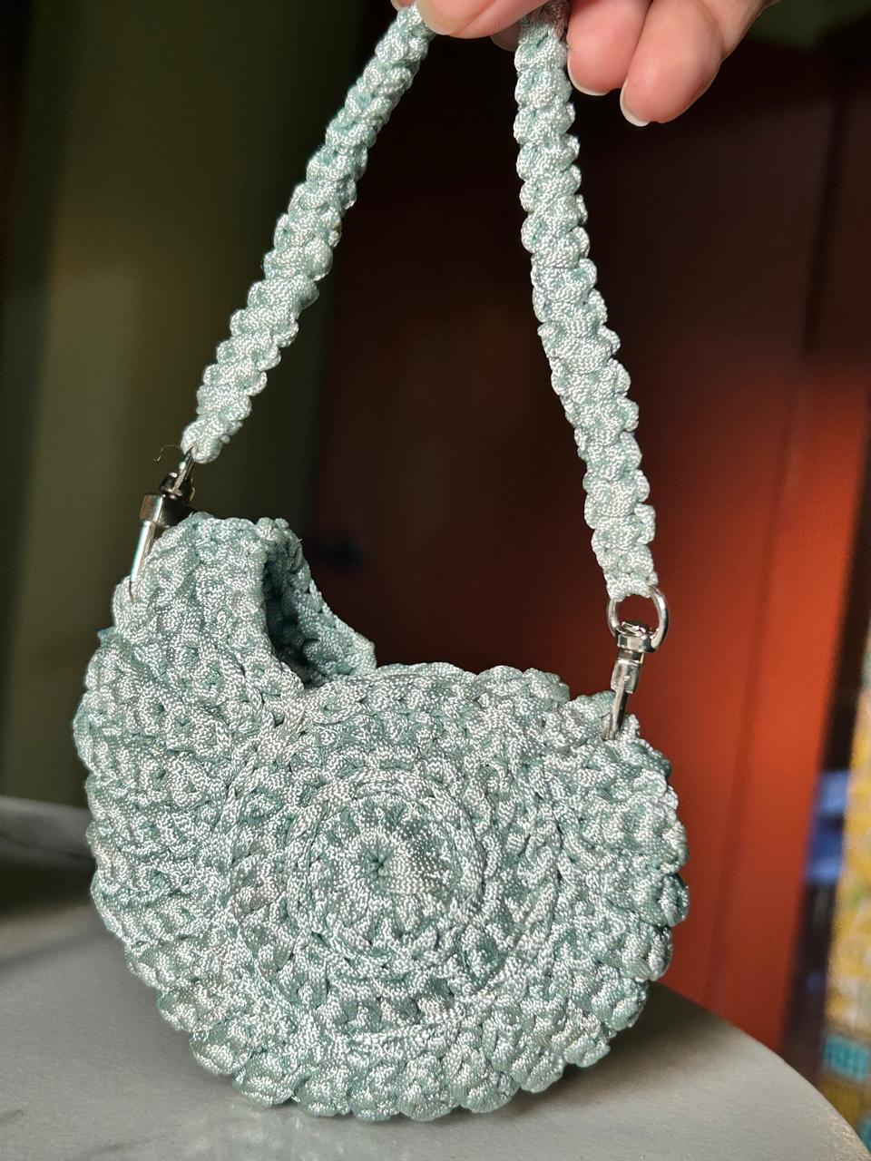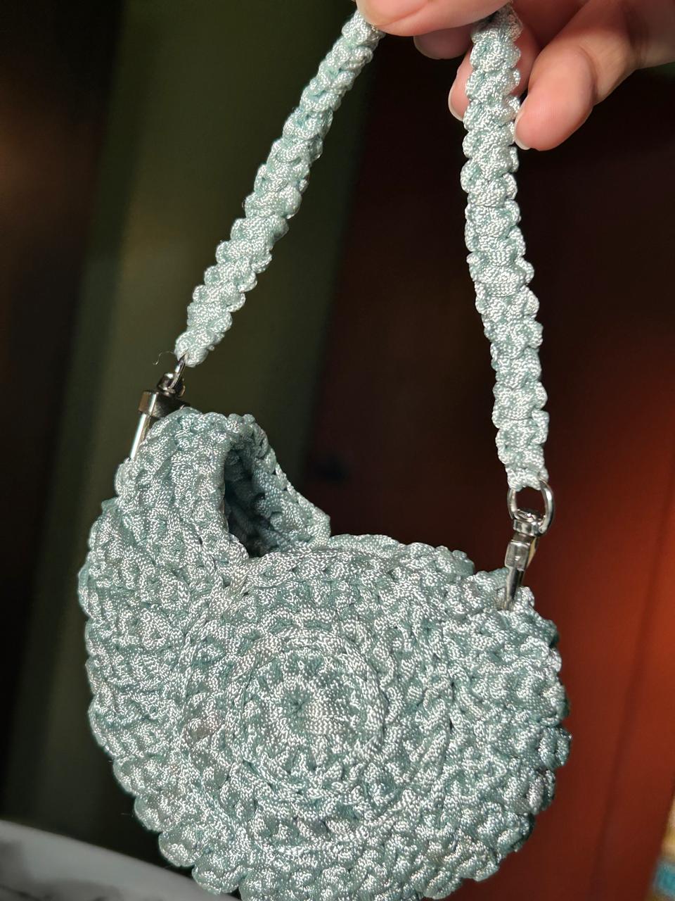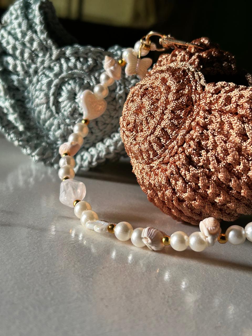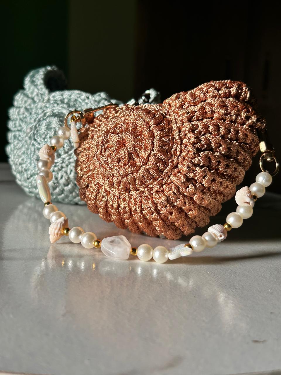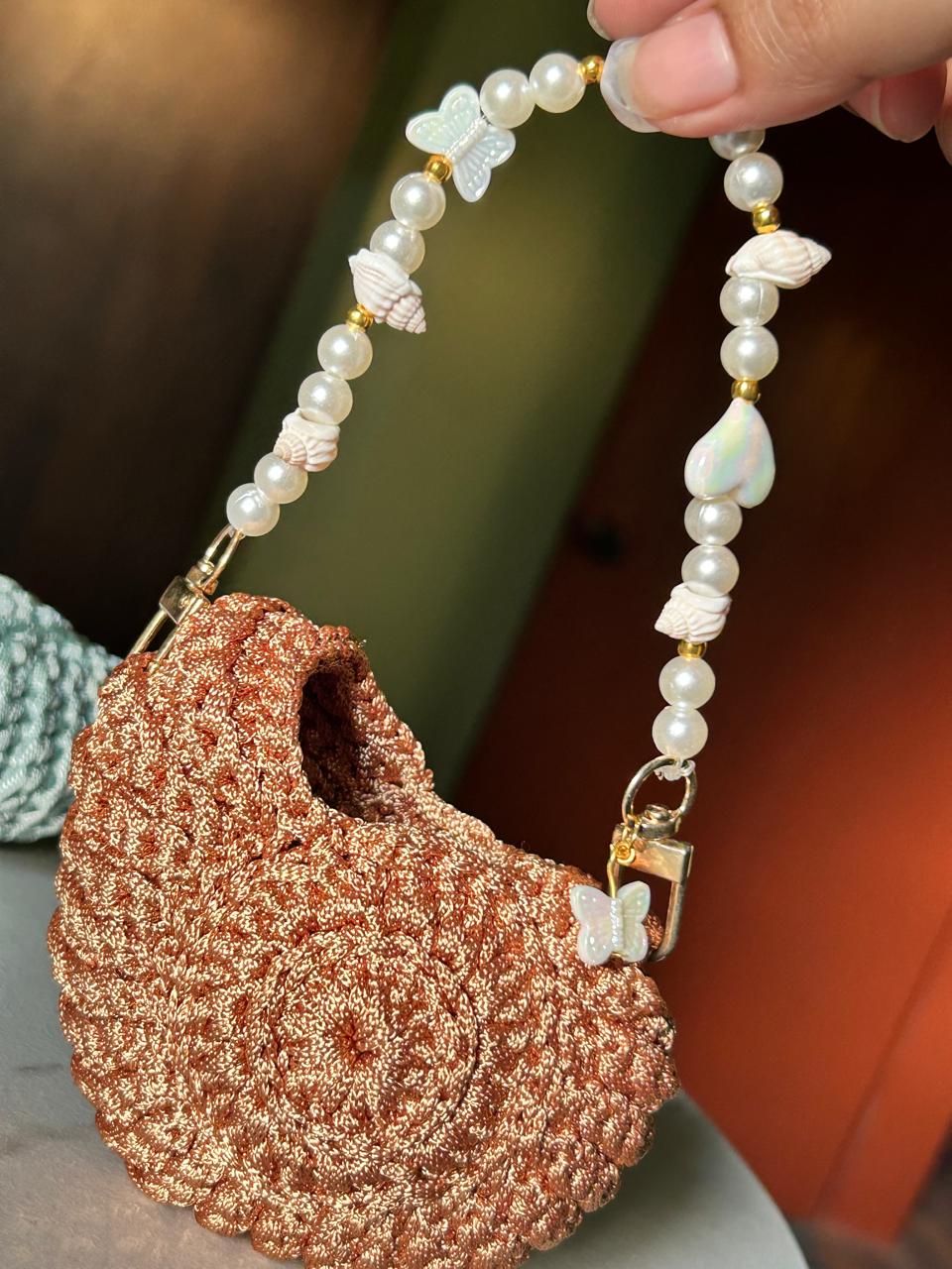 ๐ Handmade crochet pouch with seashell & pearl strap ๐โจ