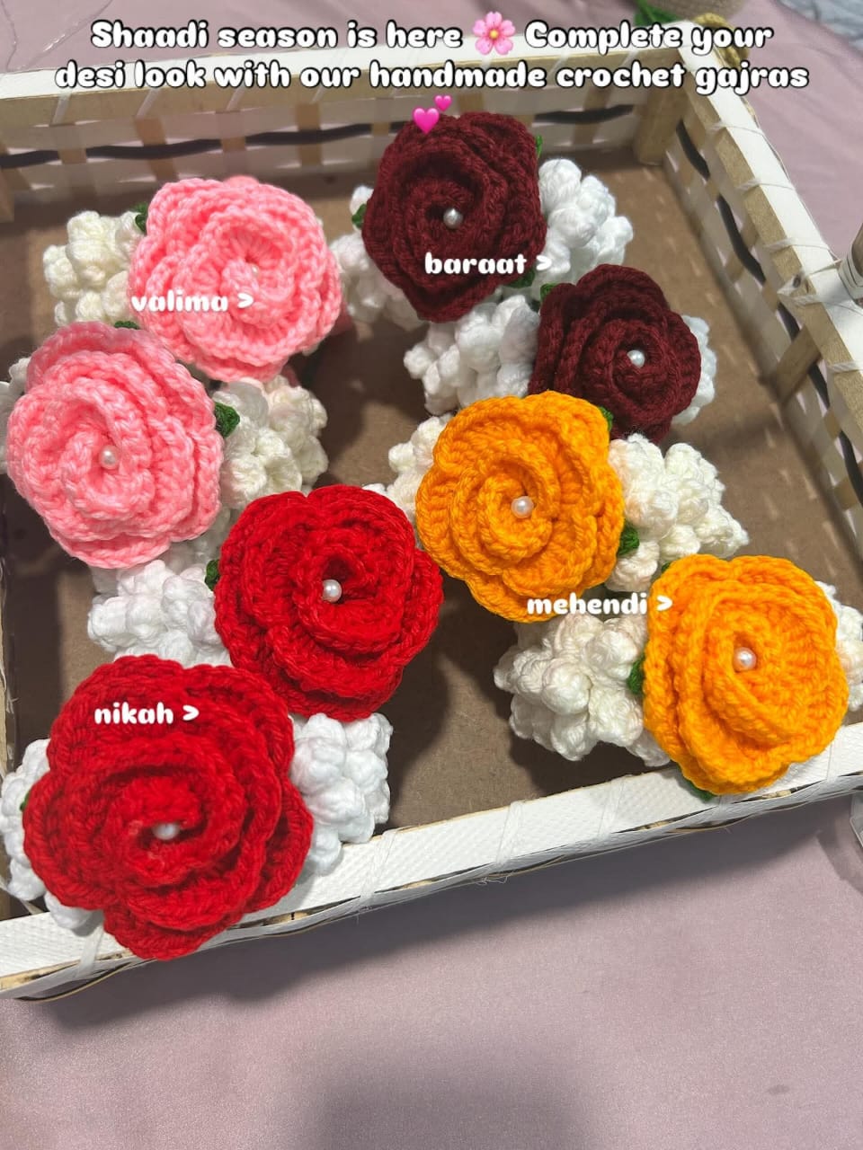 πŸ’πŸŒΈ Handmade Crochet Wrist Gajras – Perfect for Mehendi, Nikah, Baraat & Valima πŸŽ‰βœ¨